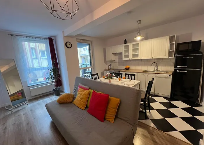 ラツワヴィツェのパノラマから1.1km離れたシルドミエシュチェ地区に位置するGolden Houseアパ-トはテニスコ-ト,アクアパ-クと理容室を提供します. ヴロツワフ・コペルニクス空港は宿泊施設から15キロメ-トル以内離れた所に位置しています.